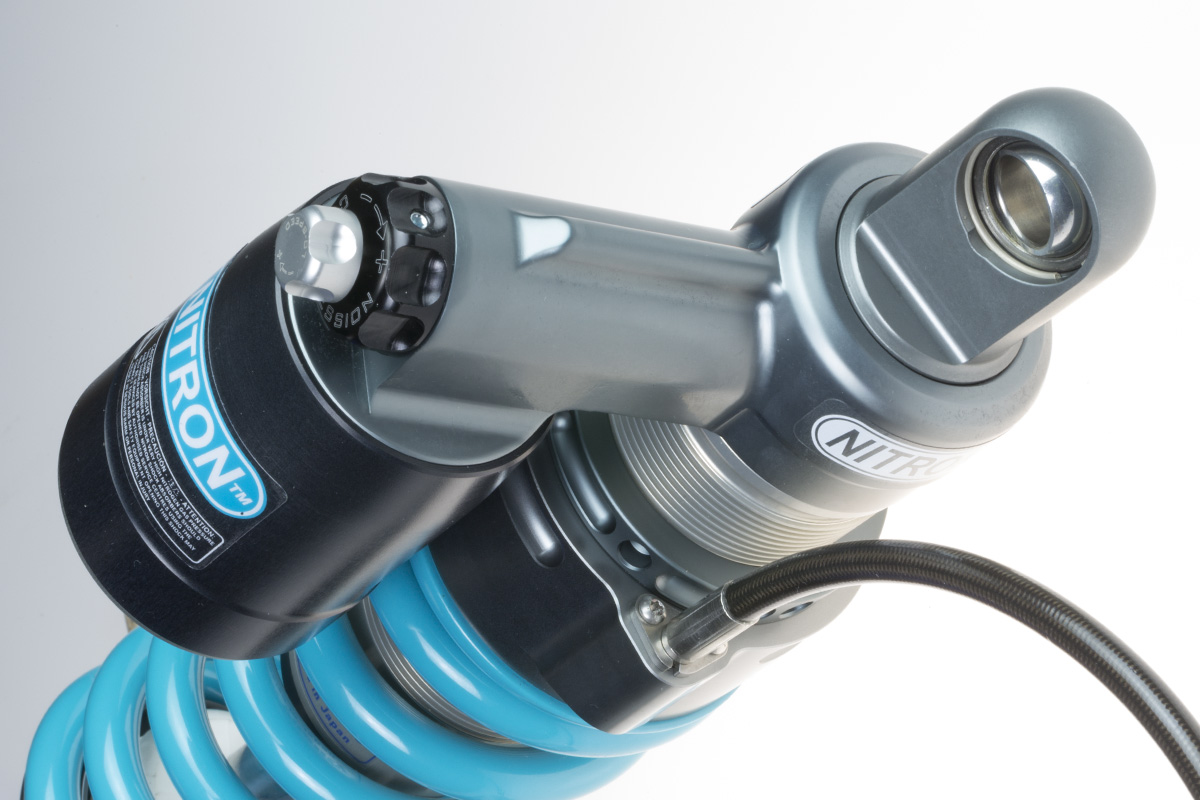 大柄な車体に荷物を満載し、悪路を物ともせず目的地を目指すアドベンチャーマシン。要求されるサスペンションはどんな過酷な条件でも耐え得るタフさ。そして、長時間ライディングでの快適さ。NITRONでは、その2点を両立させるべく大径46mmボディチューブと16mmピストンロッドをセレクト。