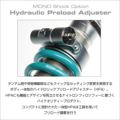 またオプションで油圧のプリロードアジャスター(HPA)をご用意し、走行状況に応じたセッティング変更をより簡単に行う事が出来ます。