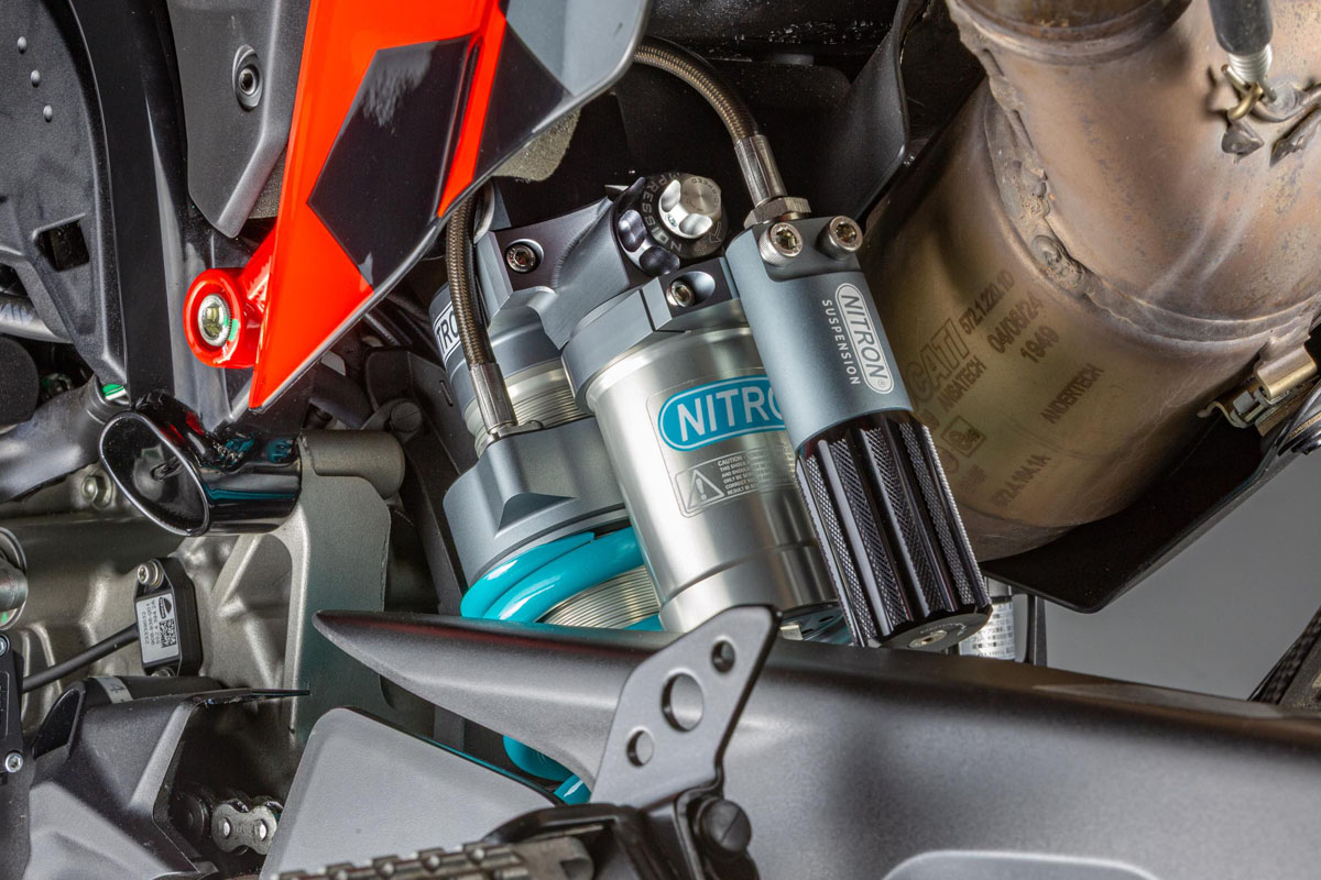長きにわたり人気を誇るDUCATIのハイパーモタードシリーズからシングルエンジンとして新たに登場した『698Mono』。ツイン時代にも劣らないハイスペックな仕様はライダーを常に本気にさせる魅力ある一台となっていますが、公道を気持ち良く走るというよりもサーキットでタイムを出すようなロードレーサー的志向の強い仕上がりとなっているため、サスペンション設定もまた一般道では硬く、作動感を感じにくい物となっています。NITRON ではあくまで公道をメインに、マシンの性能を最大限に引き出せるようスプリングレート、減衰特性の大幅な見直しを実施。しなやかな作動感と強過ぎる事のないコシ感の絶妙なバランスを構築。快適な乗り味は安心感にも繋がり今まで以上に マシンを自在に操る事が可能となります。本製品ではお客様のご使用用途に合わせて標準セット値の他、2種類の推奨セット値を提供し、走行状況に合わせ各キャラクターの違いをお楽しみ頂けます。スプリングの色はターコイズに加えタイタニウムブラックがセレクトできます。 NITRON R3シリーズはコンプレッションに2WAY(低速・高速)とリバウンドに1WAY。合わせて3WAYのダンパーアジャストシステムを標準装備。 2WAYのコンプレッションアジャスターは荷重の掛かりづらい低速域でのトラクションと大きな荷重が掛かる高速域で 安定感を両立することを可能とし、ストリート~レースユースまであらゆる用途・レベルのライダーの細かい要求に応える。 さらに、これら3WAYのアジャスターはナイトロン独自のシステムで他のアジャスター領域に影響を与えない 完全独立システムを採用し精密で幅広い調整が可能。車高調整用のアジャスターも全モデルに標準装備。(一部車種を除く) ダンパー、スプリング、車高とショックに必要なアジャストシステムをフル装備するナイトロンの最上級モデル。